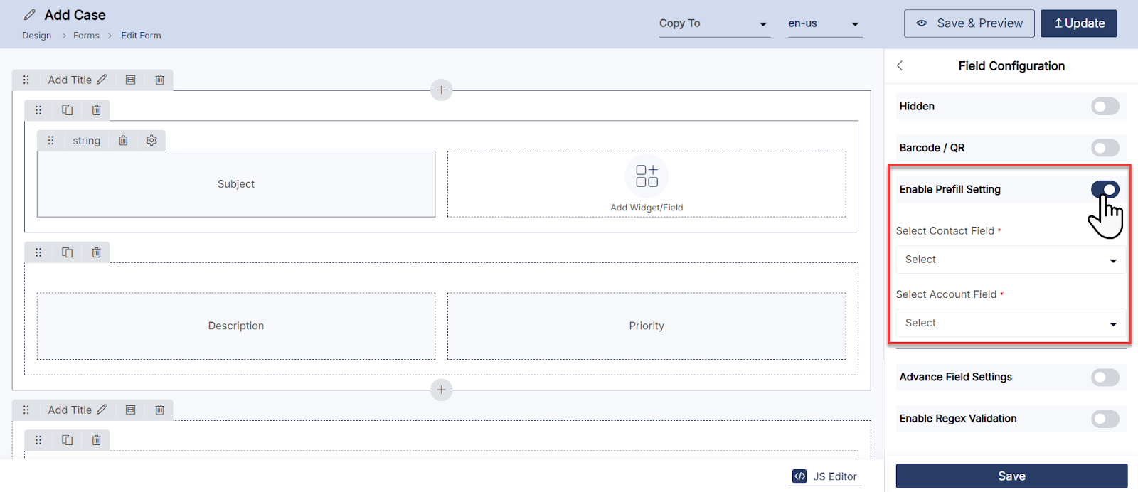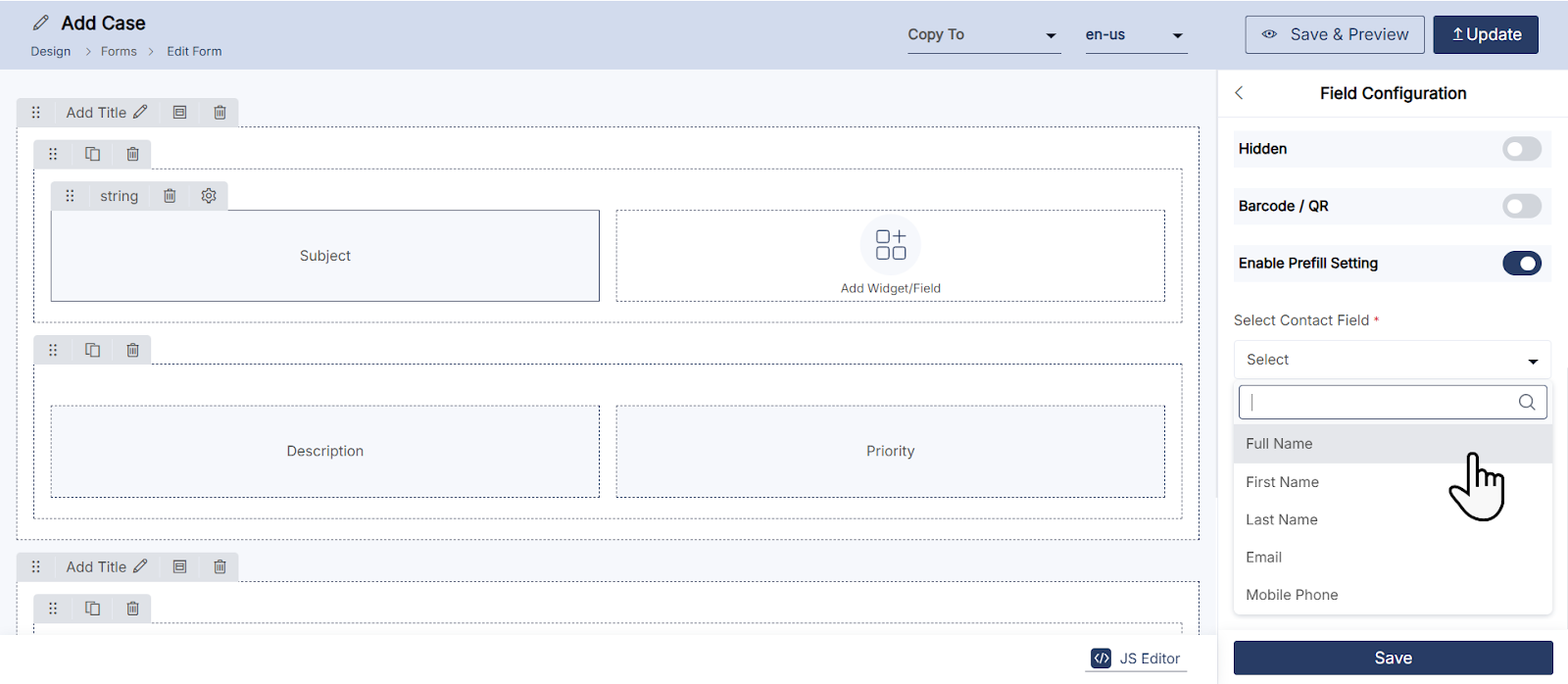 – For example: “Create a new case form including the ‘Case Stage’ field.”